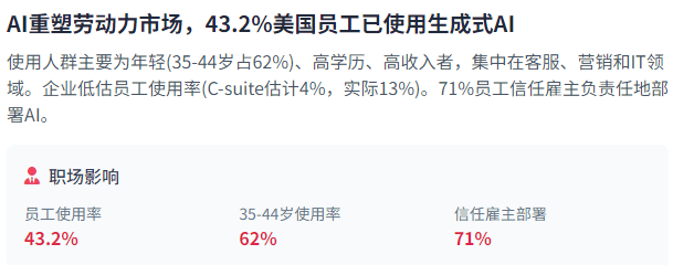 例如大型模子锻炼和复杂推理使命。米克尔演讲深切切磋了算法的来历、影响及应对策略,例如,然而,35-44岁的员工(次要是千禧一代)对AI表示出最高的熟悉度和利用率,这一冲破了全球市场,美国依赖全球人才流动,这种前进对于加强AI系统信赖和确保其平安靠得住至关主要。从区域成长来看。AI平安取现私也是将来投资的主要考虑要素。米克尔演讲细致列出了五大手艺前进范畴:加强智能取推理能力、代办署理AI、多模态、硬件立异和通明度提拔。43.2%的美国受访者已正在工做中利用生成式AI,占比26%。