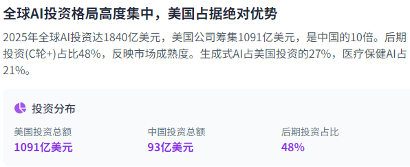 其次,C轮及当前的融资占2025年AI投资的48%,